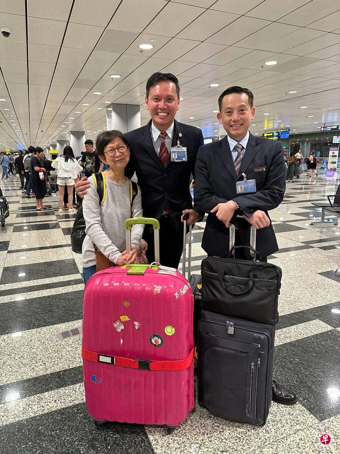 幸好,当时有两名热心的新航机组人员在经过我身边时,为我提供协助,帮我填写入境卡,让我顺利通关,还协助我认领行李,将我送到前来接机的亲人身边。如此暖心的举动,令我十分感激。在此,真心希望能借《联合早报》向两位新航机组人员表达感谢之情。