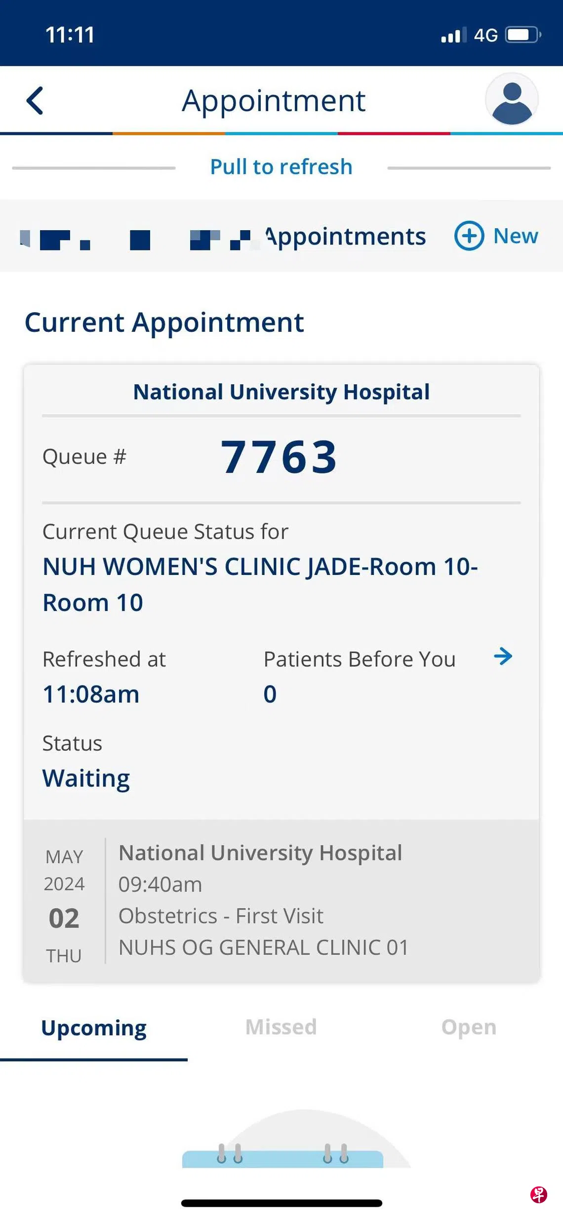 5月2日去新加坡国立大学医院妇产科检查,预约时间是早上9时40分,医院的预约应用显示前面没有病人,可是我到11时54分才得以见到医生。