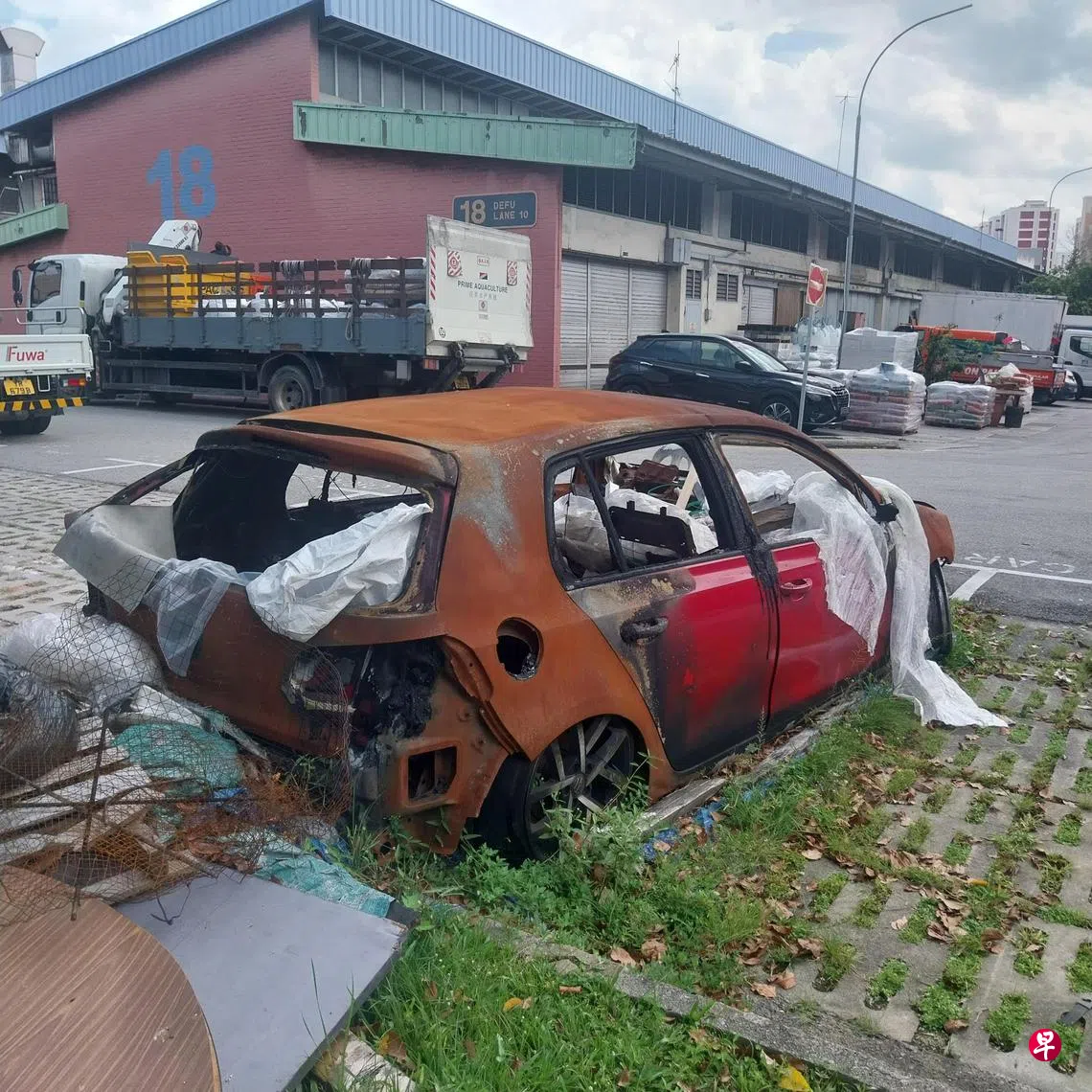 6月4日,我又来到该工业区,只见烂车变成了垃圾车,车内装满废物,如塑料膜、保利龙、烂鞋、烂布,车头车尾全是破烂帆布和废木,后座椅也已熔化,相信车内会有积水滋生蚊虫。