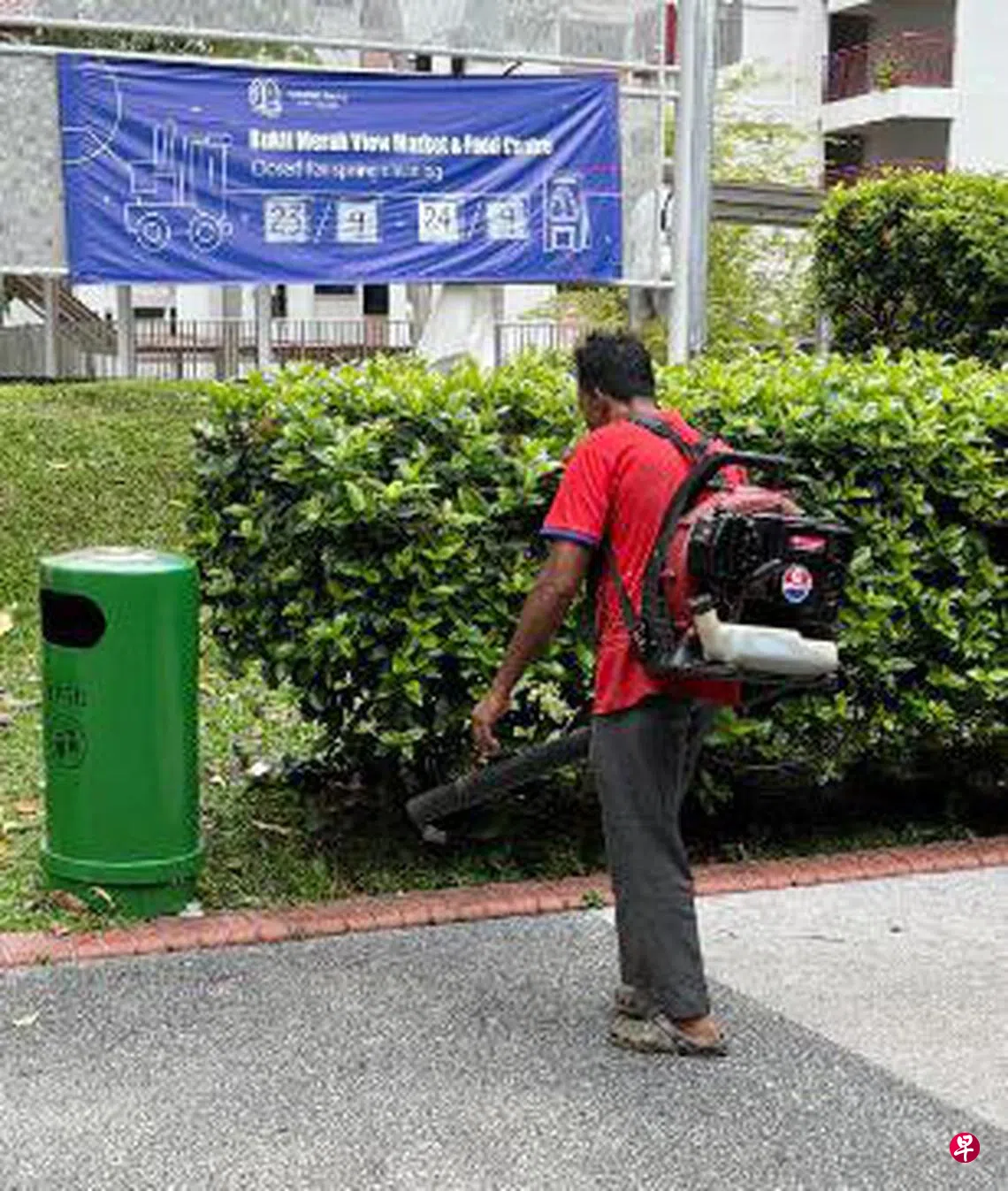然而,9月21日上午,在红山景第115座巴刹和熟食中心,我仍然看到一名工人使用燃气吹叶机。刺耳的噪音和呛人的油烟味,严重影响食客的心情,本应是日常清洁工作,却变成污染源。