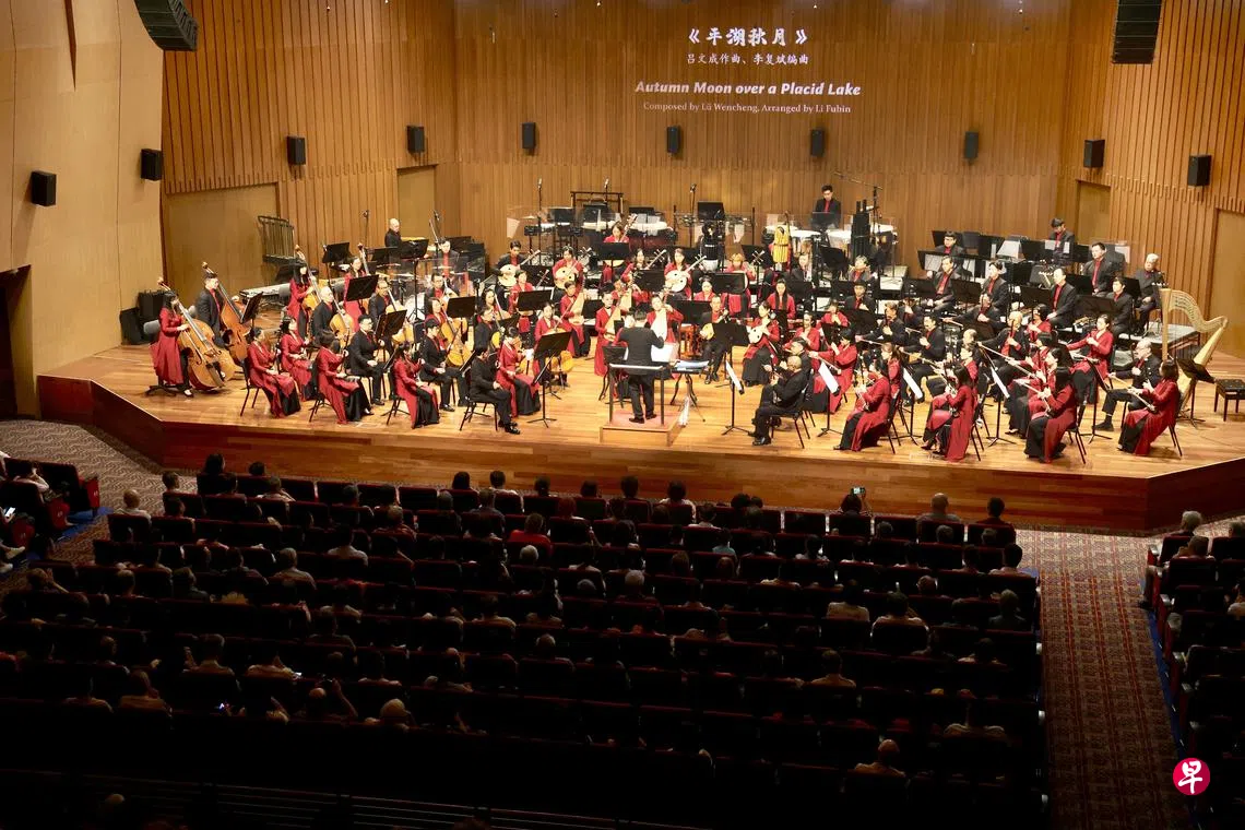 我认为,文化传承不应拘泥于课本或习题,而应通过多元化的体验,激发孩子对母语的兴趣。因此,我特意带两个孩子来欣赏。这已是他们第二次接触华乐表演;去年他们在“经典回响之古月照今城”音乐会上,初尝华乐的魅力。