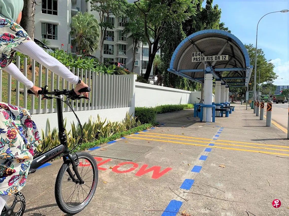 在设计公共巴士站时,确保车站的安全和无障碍,是陆路交通管理局的首要考量之一。只要空间允许,我们都会在巴士站后方修建绕行道,以尽量减少活跃通勤用户和乘客之间的接触。脚踏车骑士应使用绕行道,并礼让乘客及其他弱势群体,如坐轮椅和推婴儿车的人。