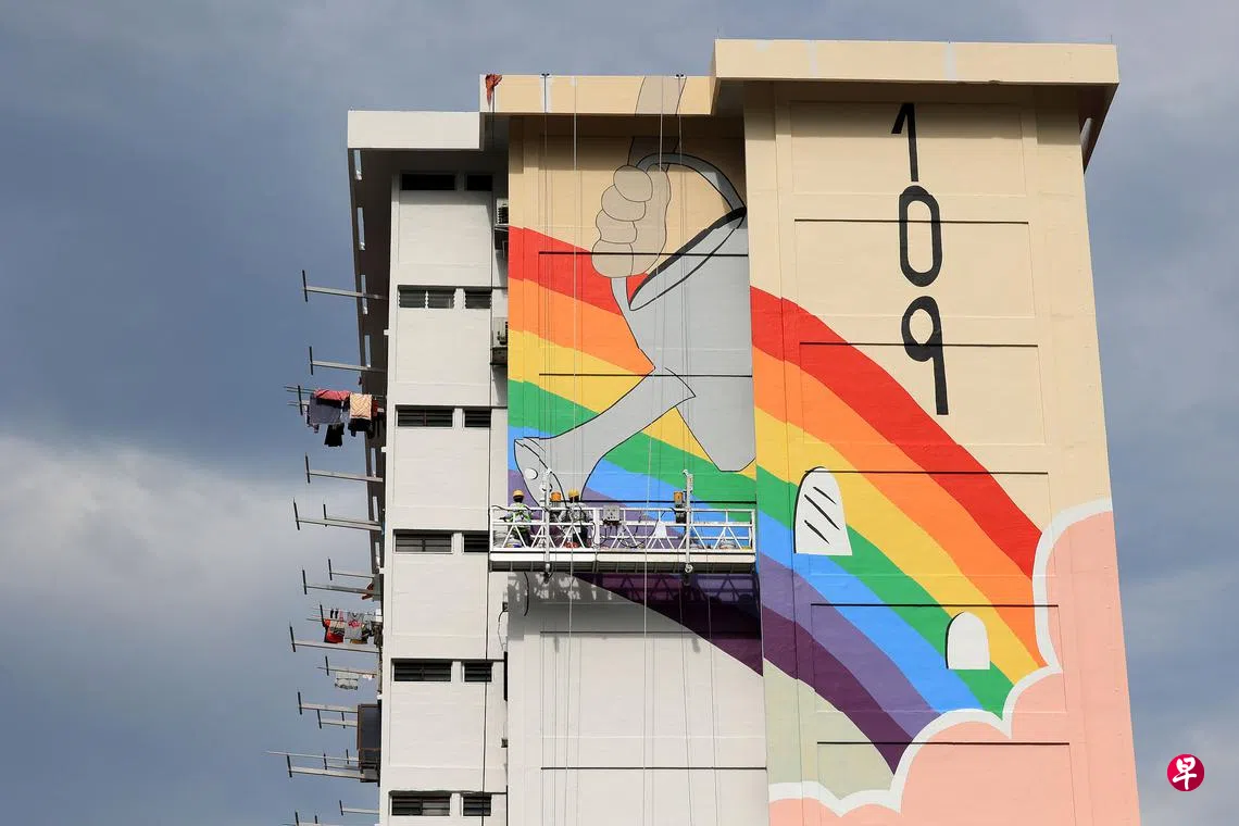 蓝云舟:都市一角订户赠阅文章(龙国雄 摄)涂上一抹彩虹,组屋区摇身一变,成为七彩乐园。勿洛北第109座组屋的外墙上,两名工人当起了“画家”,给组屋换上新装,增添生气。色彩鲜艳的图案不仅让组屋外观焕然一新,也能帮助失智症患者辨别方向。凤山作为失智友善社区,在推行有利于失智症患者的措施不遗余力;东海岸基层组织前年也推出“东海岸乐龄蓝图”,提高失智症患者的生活品质。上一篇陈可扬:生命的颜色下一篇沈越:外婆的叮嘱购买此文章