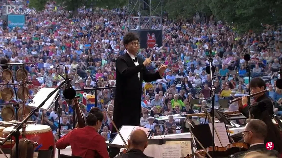 8 月7日那天,我打开手机里《联合早报》推送的新闻,看到新加坡青年音乐指挥黄佳俊带着新加坡华乐团的五位团员,在纽伦堡的户外古典音乐节上,与纽伦堡交响乐团的合奏视频。面对现场7万多名观众,线上数十万名观众,乐团演奏19世纪俄国作曲家穆索尔斯基(Modest Mussorgsky)创作、黄佳俊改编的《图画展览会》。这是黄佳俊驻团的最后一次演出,也是他改编的《图画展览会》世界首演。