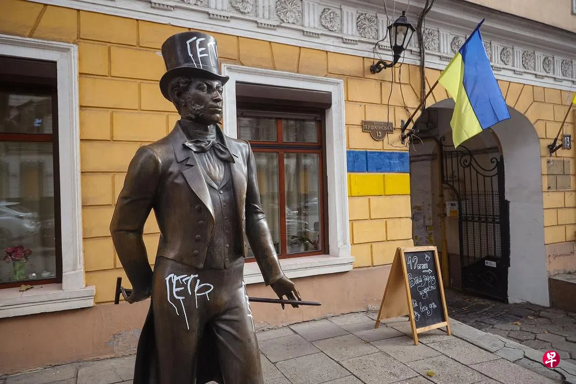 就在新闻传出俄罗斯占领军撤出乌克兰南部重镇赫尔松的同时,不远处的敖德萨港在10摄氏度的初冬天气下,一条名为普希金街上的这名文学家雕像,被人涂上“滚开”的字眼。