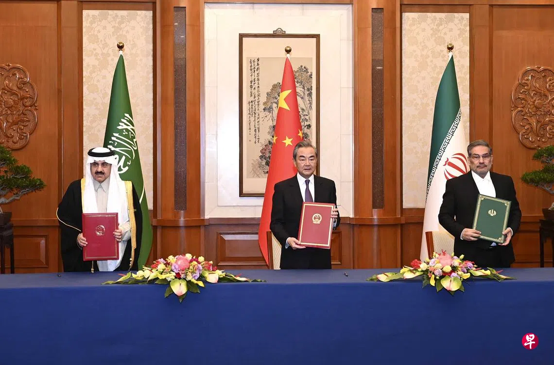 三国宣布,沙特和伊朗达成协议,包括同意恢复外交关系,在至多两个月内重开双方使馆和代表机构,安排互派大使,并探讨加强双边关系。三国表示愿尽一切努力,加强国际地区和平与安全。这是不久前中国发布《全球安全倡议概念文件》后的第一个重大外交成果,也是中国外交不再拘泥于以经贸关系消极建构地缘政治态势,转向进取性现实主义的里程碑事件。