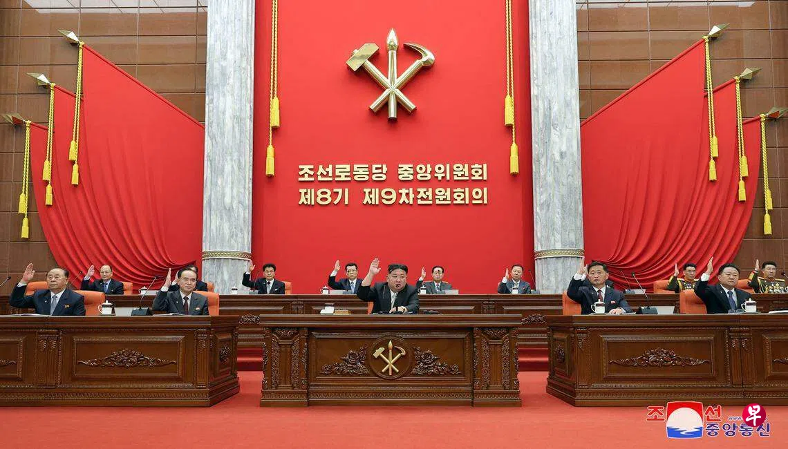 2023年12月26日至30日,朝鲜劳动党八届九中全会扩大会议,金正恩作报告,与美韩敌对关系升温。他左右开弓,一方面指责美国加剧军事威胁,2023年“美军方流氓和日本、南朝鲜鬼子一起进行的联合军演次数较去年同期增至两倍”;另一方面与尹锡悦政府决裂,指责韩日扮演起美国“忠犬”角色,定性韩朝“不是同族关系、同质关系”,而是“敌对国关系、交战国关系”。