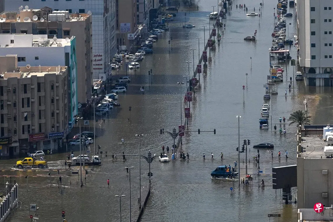 位处沙漠地带的迪拜在24小时内降雨254毫米,是当地每年平均雨量3.12吋(约79毫米)的三倍以上,亦为1949年有记录以来最高。由于降雨量远超过迪拜排水系统负荷上限,多地出现淹水,部分地铁线停驶。暴雨迅猛导致水位急涨,有不少驾车者要弃车逃生。社交媒体平台有多条视频显示商场和房屋被淹,最少一名70岁年长者连人带车被冲走丧生。