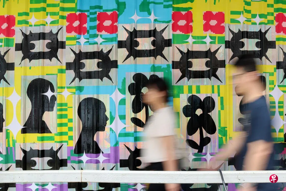 新加坡市区的许多街道藏着惊喜,滑铁卢街是其一。就连聚舞坊旁的建筑工地围墙,也化身为巨大的画布,展示本地设计师 Knuckles & Notch的彩色油印机作品。