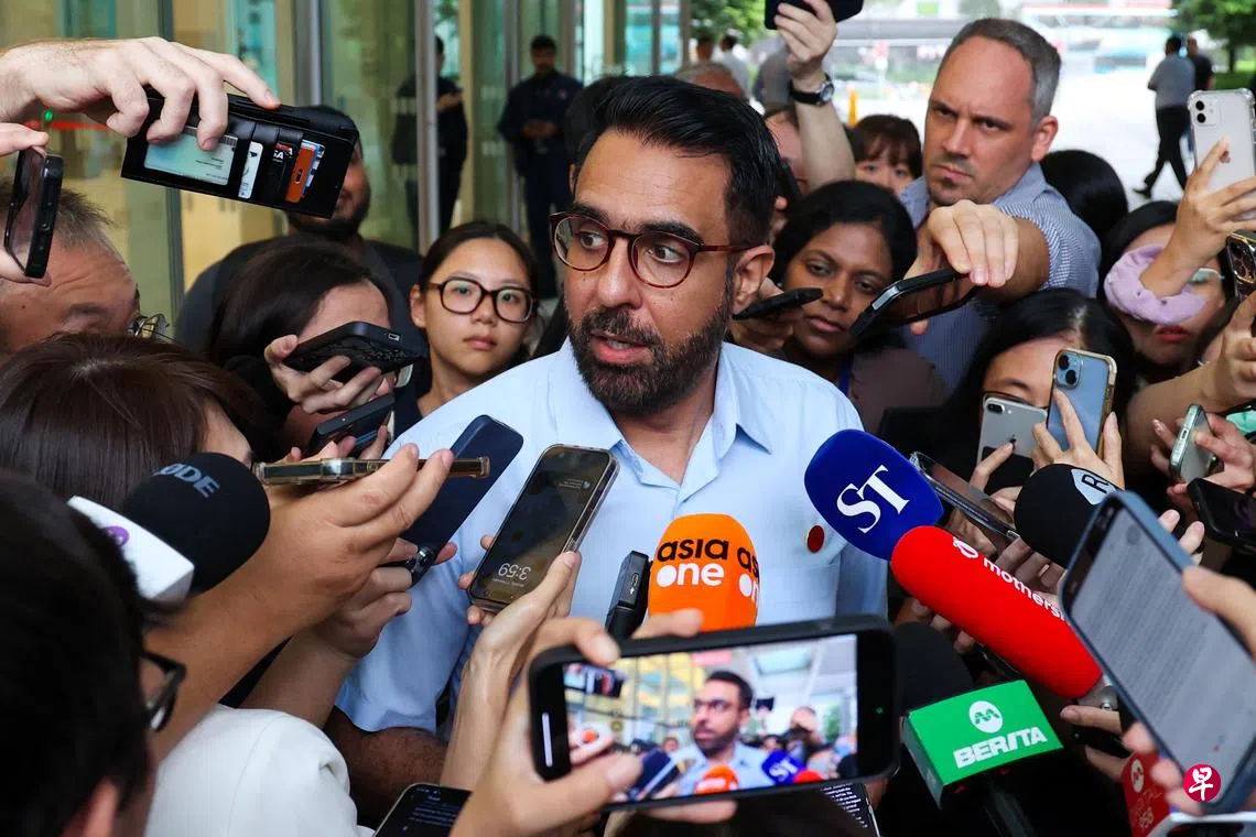 陈可扬:另一个战场,另一种投选订户赠阅文章有记者问他被逼退(forced to consider stepping down)的可能性有多大时,毕丹星(中)的反应是“这个时候我的当务之急是挺身而出,而不是退下”(the need of the hour is for me to step up, not step down)。 (林明顺摄)伪证案宣判后,被裁定有罪的国会反对党领袖毕丹星,穿着标志性的浅蓝色短袖上衣,胸口别着工人党的红色徽章,在国家法院外接受国内外媒体访问。 他的对策昭然若揭——我们换另一个战场。 这时候的毕丹星俨然不再是被告,战场不再是法庭,而是舆论场或政治舞台。 想法版毕丹星工人党大选邻里购物券林志蔚2025年新加坡大选上一篇王美燕:山穷水尽路遥遥?下一篇陈凯松:老妈子的白斩鸡购买此文章
