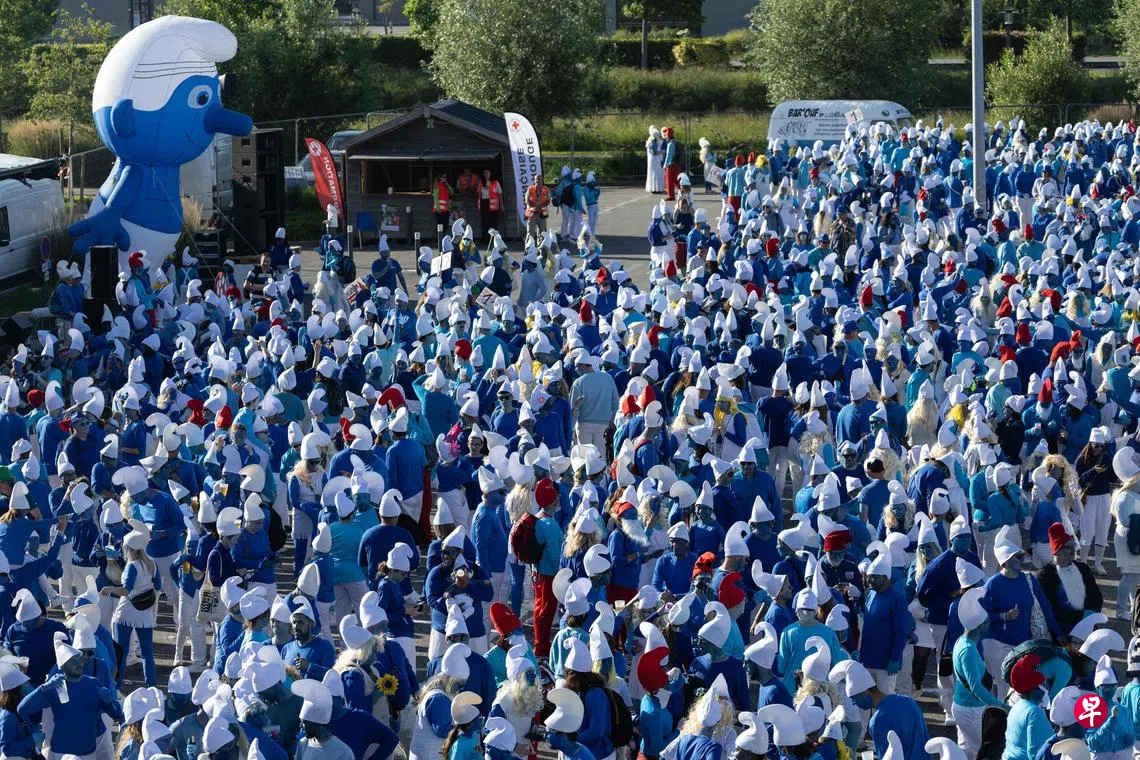 法国布列塔尼小镇朗代诺(Landerneau)在5月17日迎来一场不同寻常的盛会——3076只蓝精灵(Smurfs)齐聚一堂,刷新世界上最多人同时扮演蓝精灵的纪录。对于这座仅有1万6000人口的小镇来说,这不仅是一场热闹的活动,也是一次唤起童年回忆、憧憬美好生活的聚会。