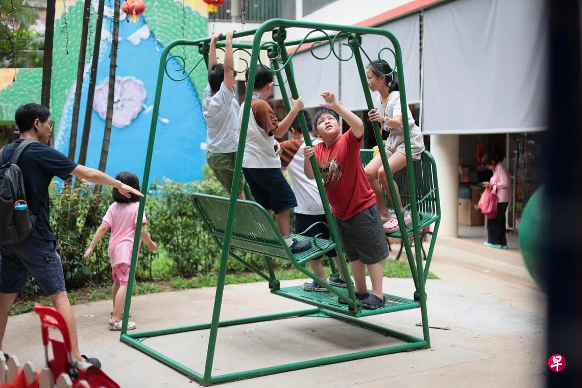 挤在那个小小的秋千上嬉戏