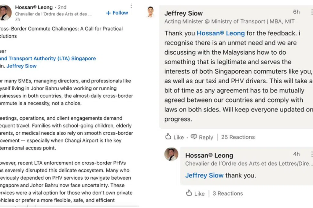 无论是车价或是油价,新马两地的成本差异悬殊,若开放让两地司机在同一市场竞争,显然会形成严重的不对等。这也是为何取缔非法跨境载客、保障本地司机的生计,几乎是社会共识。然而,问题关键在于:梁荣耀并不是在挑战这一点,他的呼吁重点在于跨境通勤需求的改善,但许多网民的回应,却放大成“威胁国家根基”的表述。