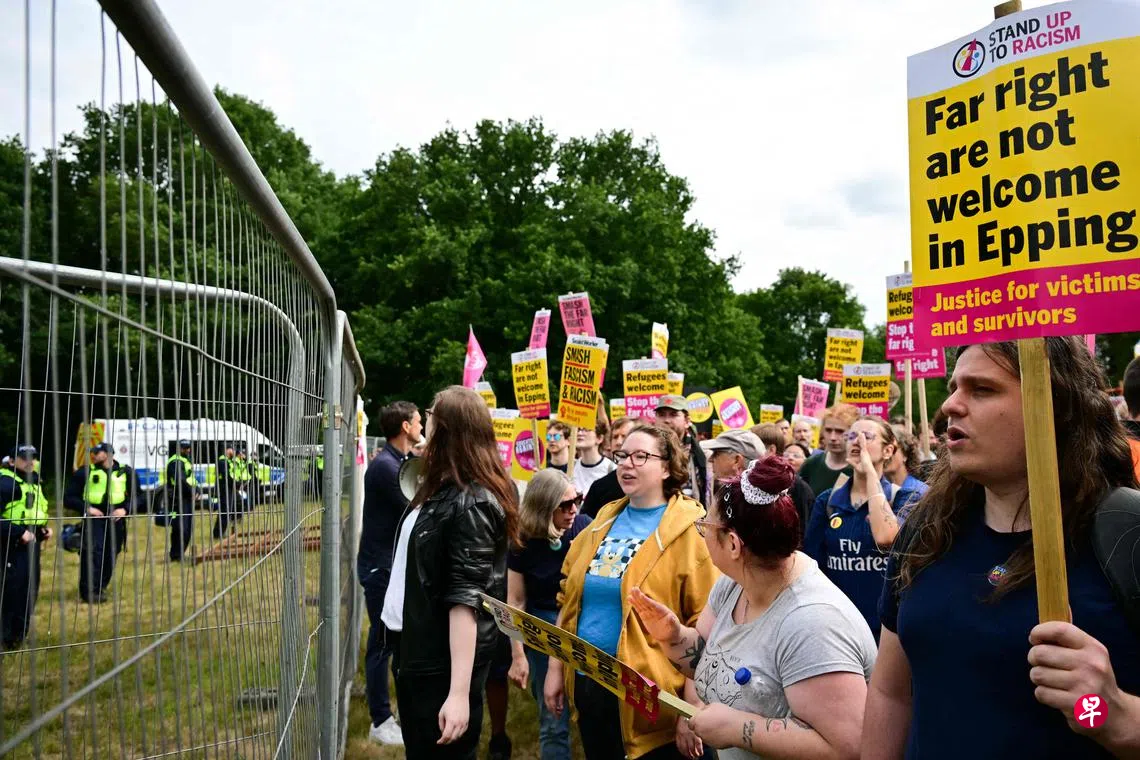 若说“小船”是抽象的边境画面,“酒店安置”则是触手可及的社区矛盾。英国内政部近年大量租用商业酒店安顿待审个案:政府文件与主流媒体均提到“每日(花费)约800万英镑”的量级(2023/24财年);截至今年6月底,仍有约3万2059人住在酒店。账单是真金白银,冲突也在地面爆发——埃塞克斯郡埃平(Epping)镇上的贝尔酒店(Bell Hotel)一案,法院8月底允许继续安置后,当地抗议升级、警方增援、各党派人物相继表态,其他多地议会也表示还将继续诉讼。无论立场如何,“酒店安置”已从临时行政手段,变成足以点燃街头与民调的引线。