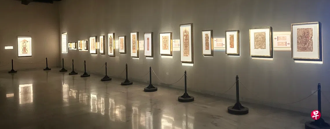 我站在新德里国家博物馆二楼的中亚艺术陈列厅中央,眼前是两扇向内打开的厚重木门。门额上的不锈钢牌子,分别用兴地语和英语写着“敦煌藏经洞丝绢画”。