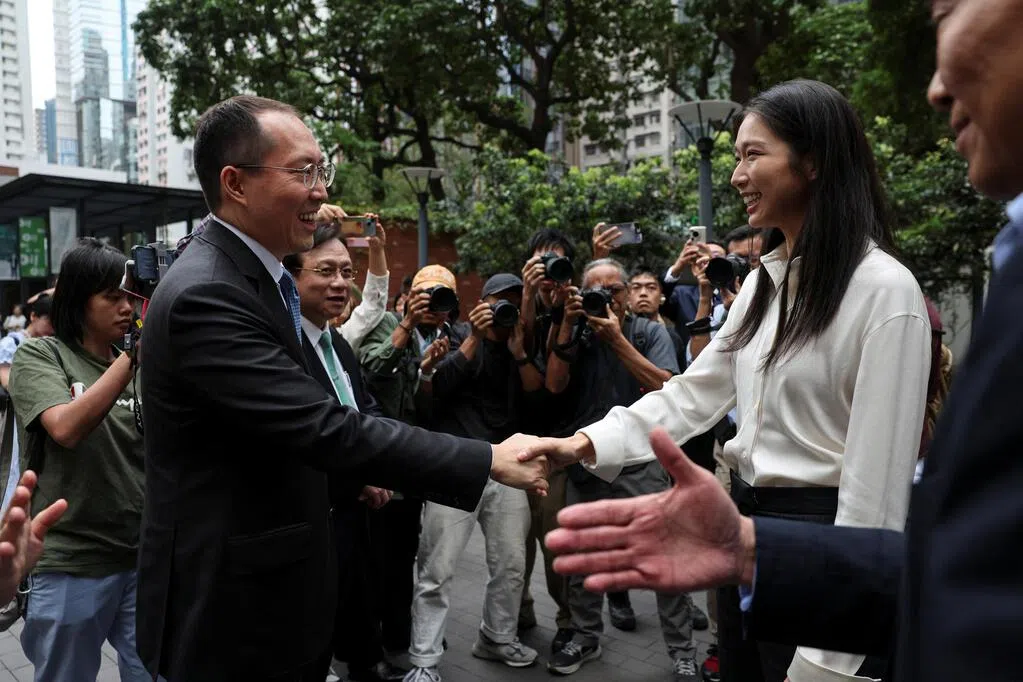 11月3日,距离香港立法会换届选举提名期截止仅剩三天,江旻憓在多名旅游业及商界人士陪同下会见记者时,宣布报名参选旅游界功能组别议席。面对大批媒体镜头,她身穿白色上衣与黑色裤装,妆容淡雅。那一刻的她,像是一名在中环上班的专业人士,而非昔日赛场上的冠军。只是,脸上那抹始终不变的微笑,似乎也掩不住一丝紧张。
