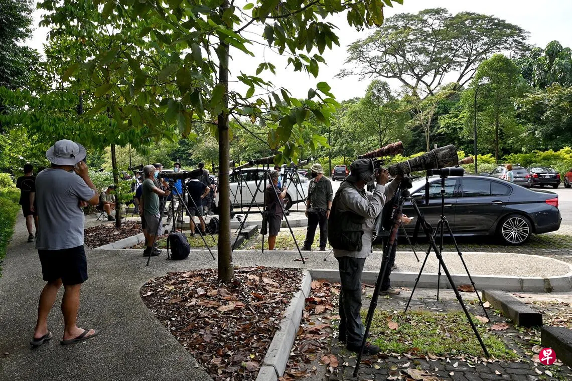 那天下午根据脸书贴文上的蛛丝马迹去寻幽探秘,踩着野草跨过荒原,行行重行行,终于闯进这个城中秘密。只见一大票观鸟发烧友早已聚集在那里,举起“长枪短炮”瞄准废池彼端深处,严阵以待。他们各就各位,耐心静等,也很有默契,一觉察到什么动静,立刻不约而同“咔嚓咔嚓”地迅速按下快门,捕捉稍纵即逝的镜头。我不过是个观鸟过客,没有专业配备,只能睁大眼睛,循着长枪短炮的方向看过去,极目眺望,果然看到“猎物”了,非常惊艳!