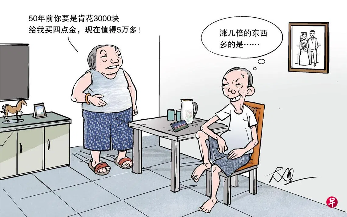 早知你会涨几十倍 我会爱你一万倍订户赠阅文章1975年,黄金每安士才100多美元,现在要价接近4500美元了(哎呀早知道……)!古代各大文明在地理阻隔下独立发展,却都不约而同视黄金为珍品,凸显了它的独特魅力。因为黄金的稀缺性,在经济动荡时,它是握在手上便心安的避险资产,在太平盛世,它是摆在人前炫耀财富和权力的工具。从前,人们说“千金难买早知道”“寸金难买寸光阴”“浪子回头金不换”,现在千金寸金市值大大不同了,谚语要不要改一下?想法版漫画上一篇都市一角下一篇汤玲玲:日本熊患的提醒购买此文章