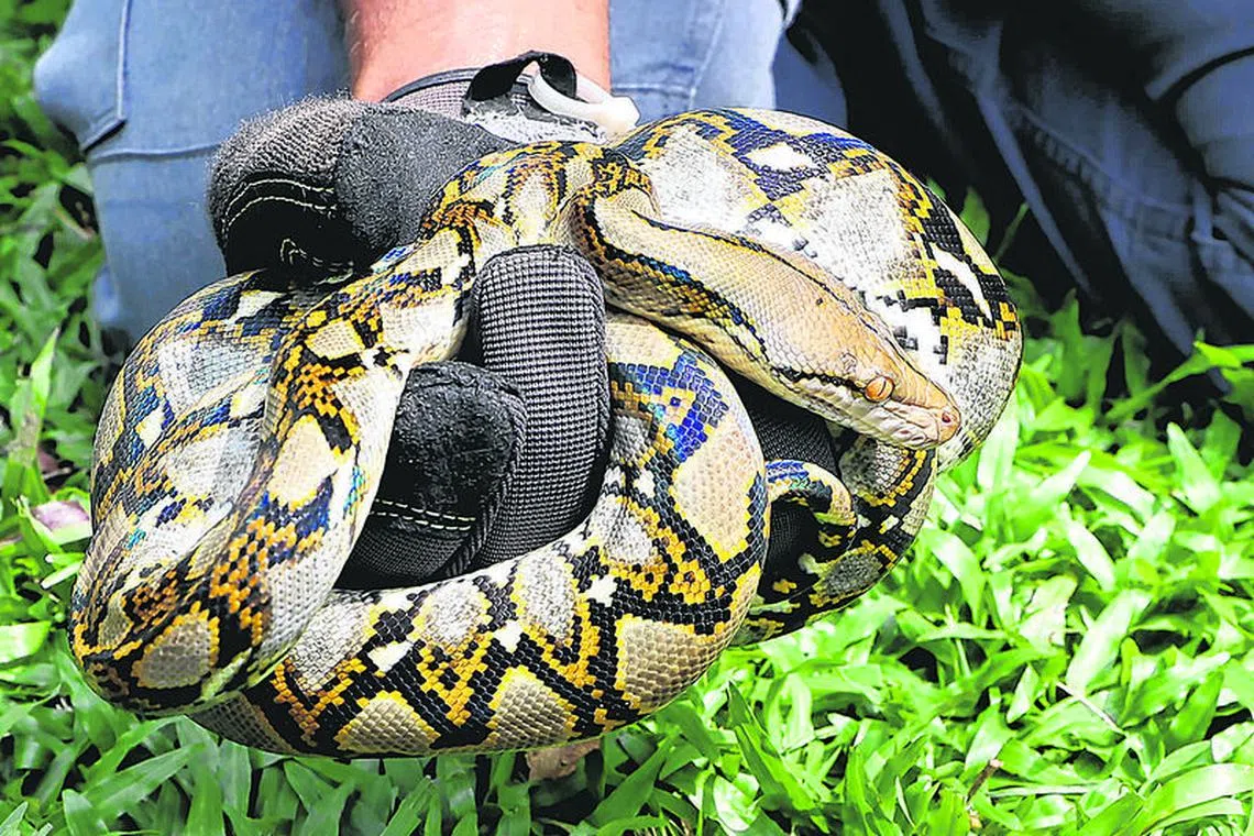 网纹蟒是世界上最长的蛇,一般喜欢在地面上活动。它们也是本地常见的蛇类。它虽然没有毒,但生性凶猛,肌肉十分发达,能够轻松地缠绕猎物,令它窒息。