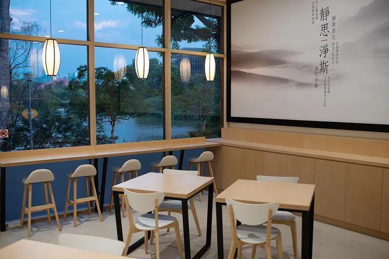 位于慈济人文青年中心的静思书轩(义顺店),是全球为数不多坐落在湖畔的书吧之一。