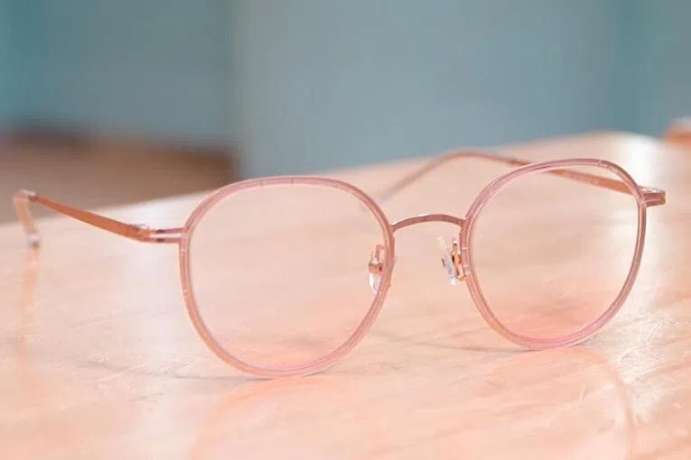 谈到当下流行的趋势,张詠铨推荐不妨用透明镜框配腮红镜片,腮红镜片下半部分有一抹浅浅的红色或橙色,透明镜框最能呈现出腮红的效果,如果配金属镜框,两者气质就有些不搭。