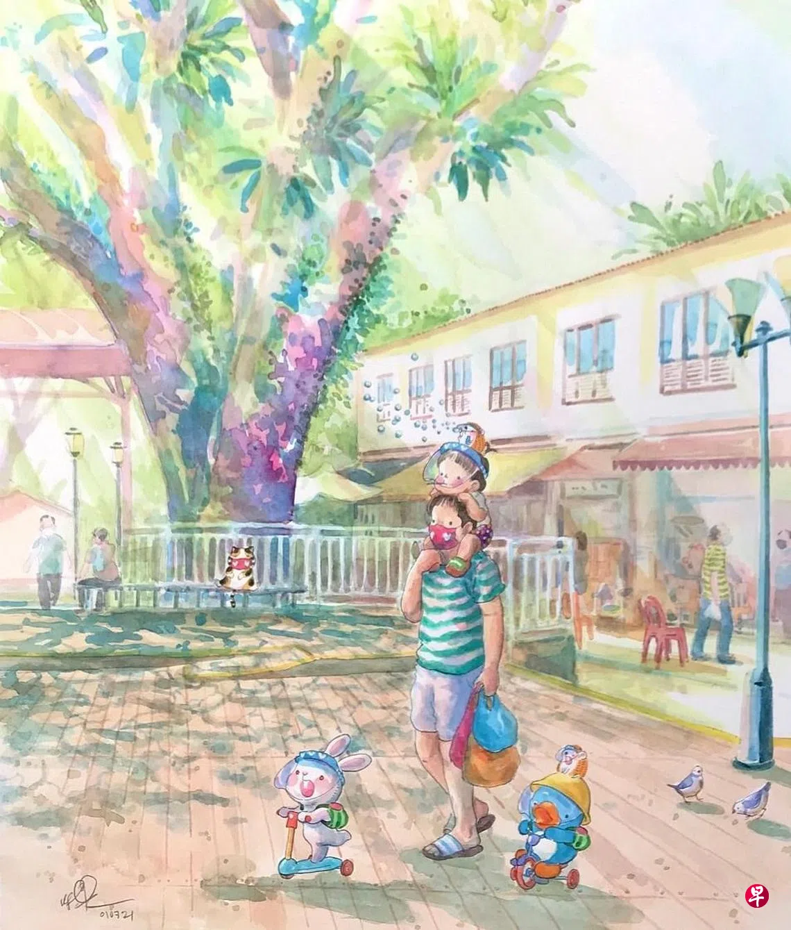上一期专栏提说并不满意草草为父亲节所画的配图。为弥补缺憾,于是重新构思了新的画作,同样以小孩骑坐父亲肩膀为题。父亲的肩膀是我们孩提时视野的第一个高度。相信为人父母者,都愿意让子女看得更高更远更广阔。然这是否就足以突破主观的局限呢?
