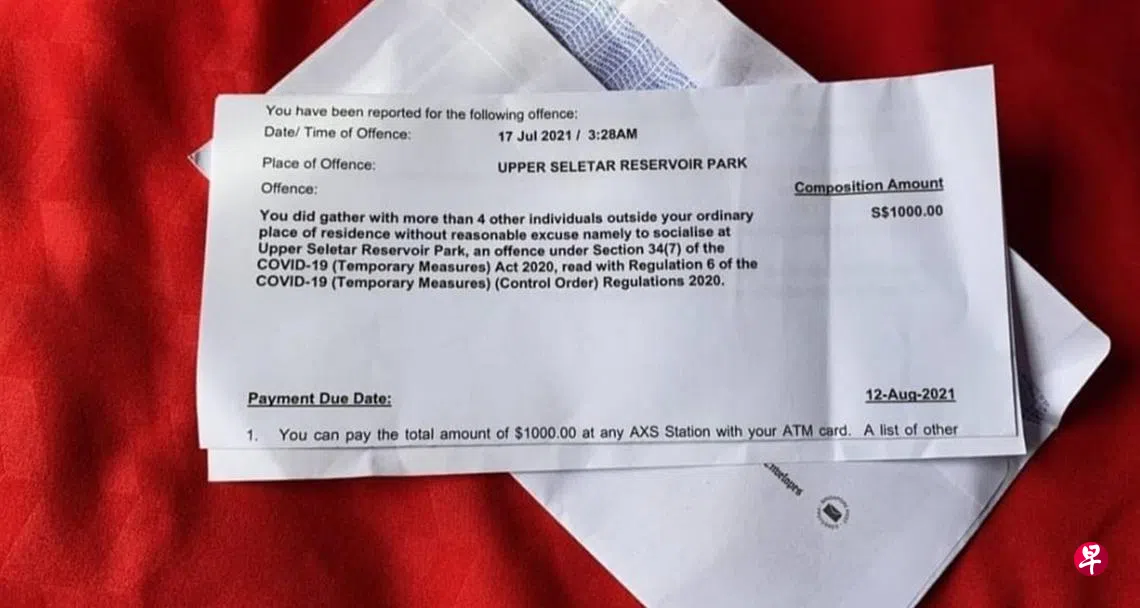 老友那天发简讯问我,群聚被捉中罚单,罚款的数额是多少?数秒钟后,一张照片发过来,那是“政府人”寄上门的罚单,根据其内容,收信人在7月17日凌晨3时许,在实里达上段的蓄水池公园跟另外至少四人,在没有充分理由的情况下进行社交活动。
