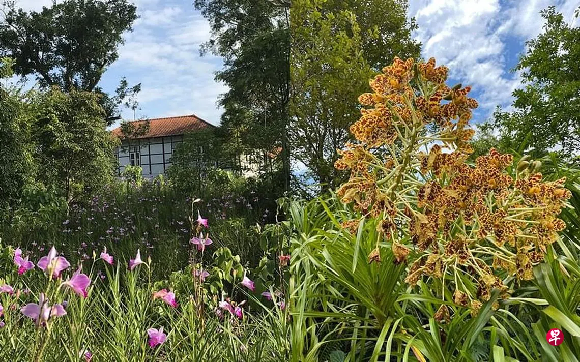 上个月,当我们蜿蜒走向那幢5号英殖民地洋房,不由“哇”一声,那一丛清秀的竹叶兰全开了,衬托得建筑格外的典雅。园林设计是英国式的,却也是热带才有的地道风景。