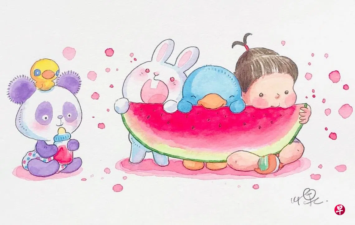 也不知是否受酷热天气影响,上周儿童节的插画,苦思不得灵感,最后干脆简单画小朋友一起开心分享大西瓜。大热天痛快来一片清甜多汁的西瓜,一定很开心;而如果还能和好朋友一同分享,肯定更愉悦。我们总是在节日彼此祝贺快乐,只是快乐是怎么一回事,谁又能肯定自己全懂?快乐是什么?如何才快乐?快乐是本能,抑或经由后天学来的?若是本能,为何随着年龄不断增长,快乐的能力反而逐步退化?若是可后天努力,那么快乐的方程式或诀窍又可何处觅得?