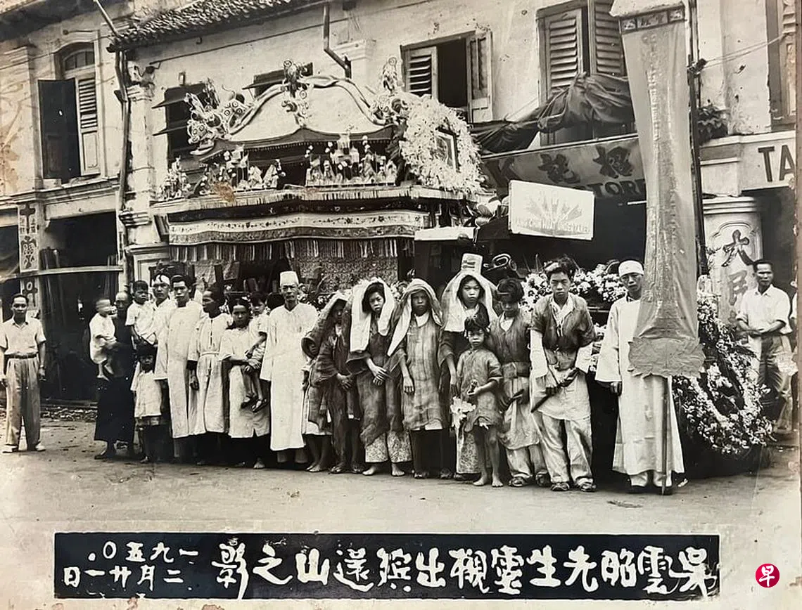 今年的收获是懂得了更多关于祖父母居住的密陀路,那是我童年经常出入的地点,但记忆不全,要亲戚补充画面,才能重塑印象。这次我们翻出了一张非常难得的黑白旧照,那是1950年在我出世之前就过世的爷爷的出殡照。地点就在爷爷的鞋店前,从照片看得出当时人丁壮大的家族成员,一字排开在灵车前场面极为壮观。据知,爷爷当时突然心脏不适逝世,很年轻,不到50岁。我的亲戚长辈特地请来照相馆的专业摄影师,拍下出殡前的一张全家福。然后还有一张更早以前的,奶奶逝世出殡时的全家福黑白照,还早了四年,是1946年的事。