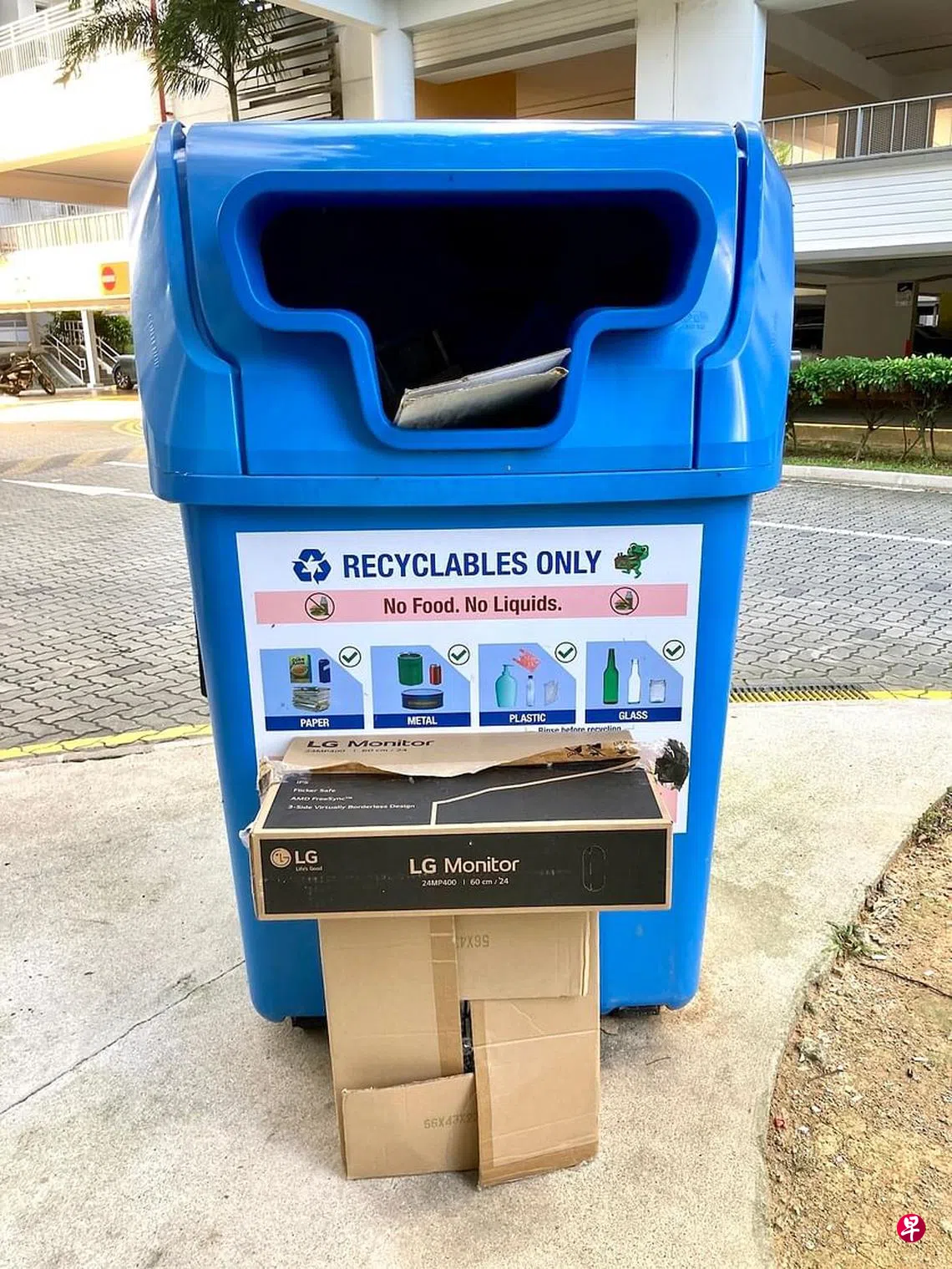 那天拿了一些塑料瓶正准备投入组屋楼下的蓝色回收箱,被几乎溢满的一幕吓着。里头的垃圾“五花八门”,除了可回收的纸皮箱、大小瓶罐,竟然还有一些普通垃圾,真是惨不忍睹。