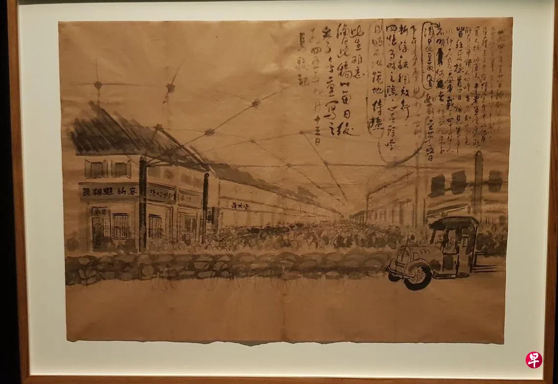 描绘“肃清大检证”的情形,过去我在刘抗(1911-2004)的漫画《杂碎画集》(1946年)看过。今年是新加坡沦陷80周年,在国家博物馆的特展,看到比刘抗的画作尺幅还大,感情汹涌的马骏(1916-1986)作品《大检证》(Ink Drawing Depicting the Sook Ching)。