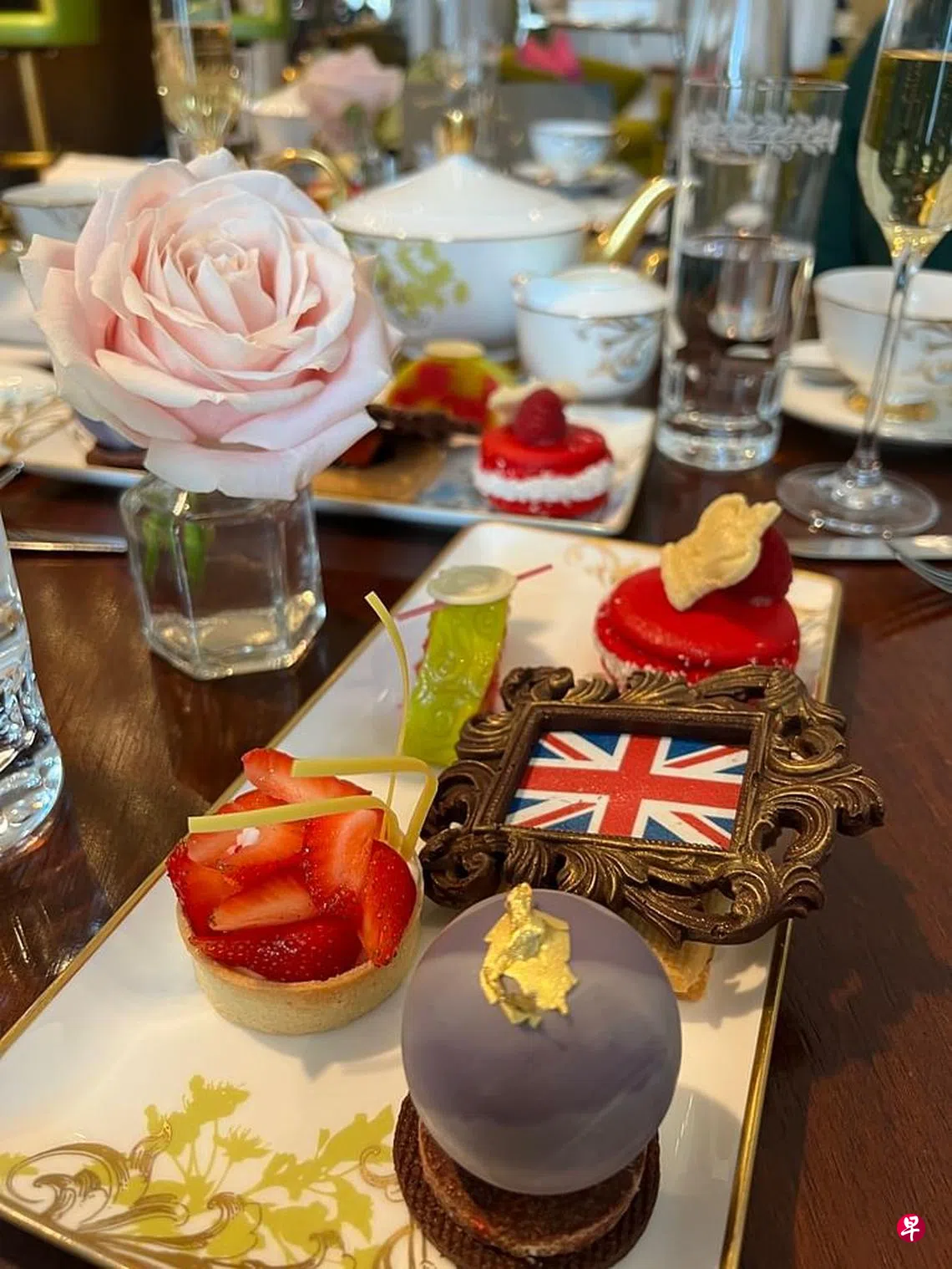 不过一套英式下午茶可不同于我们中国人的点心,我看一顿下来,晚餐是不必了,小跑两圈倒有必要。它必需有的组成部分:茶、三文治、蛋糕与甜点。今年伦敦的下午茶怎么能少了庆女王登基的主题呢?伦敦文华东方与皇室家族的渊源可谓历史悠长,1902年女王父亲将酒店的正门从海德公园移至骑士桥,1918年为庆祝战争结束,女王和妹妹在这里出席了舞会,2011年威廉王子更在这里举行了皇室婚礼前的家族庆祝宴会。今年,酒店餐饮的主厨和甜点师使出了浑身解术从5月开始推出“The Queen's Platinum Jubilee Afternoon Tea at the Rosebery”。