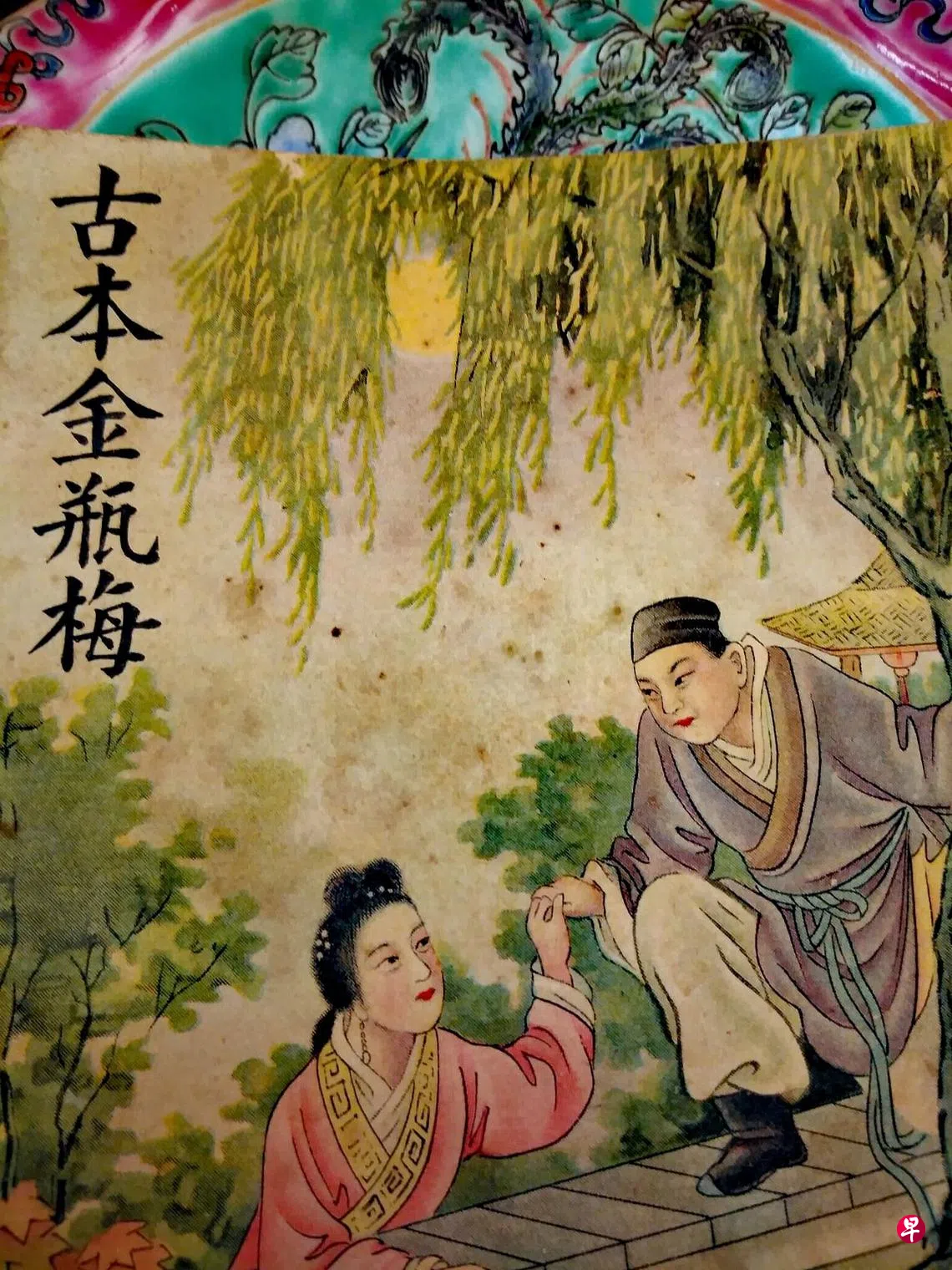 这书看得极早——几乎是初一高一的时候。当年图书馆是没办法借的:查得严厉是一回事,另外借书不能入内书库找,都站在一旁翻书卡。按照类型编号,无数白卡置放于一排的抽屉里,就让大家立着,手指拨动,瞥看纸卡里的书名作者,找好了,白卡交予馆员,进去寻书。那本小说是绝不会有,即使有存目,也不外借——时光尘埃飞舞,缓缓下降,回头想,几许荒诞而无聊。后来去的是一家小书铺,找到薄薄一本,孙述宇先生写的金瓶梅的艺术,黑底泛出玫瑰红的线描古装男女人物。掷地有声的文字,看得拨云见日心悦诚服。随即购了一套三册真本,也只有从前香港老书局会出版,什么会文堂、广智书店,用浅褐色纸皮盒子装着……真本,其实也就是洁本。如今眼前得到的二手书,仿佛是回忆里的珍本,就属于梦里一模一样的,封皮是仿版画的套色绘图,屋瓦和上面的树桠积着白雪,朱色如意结图案,楼台寂寂,旁侧有丫环偷窥,里内是丽人坐榻床,手抱琵琶——回目里不算有名的“潘金莲雪夜弄琵琶”。潘氏多日不见西门庆进屋,兰闺幽怨,拨弄起琵琶,独吟不一时,就使春梅去看,是否男主人回来了。唱词透露心事:懒把宝灯挑,慵将香篆烧,捱过今宵,怕到明朝……不知大官人在李瓶儿那边歇着,琵琶声传到他耳里,少不得找人唤金莲过来,谁知都推托睡了,身子不舒服。