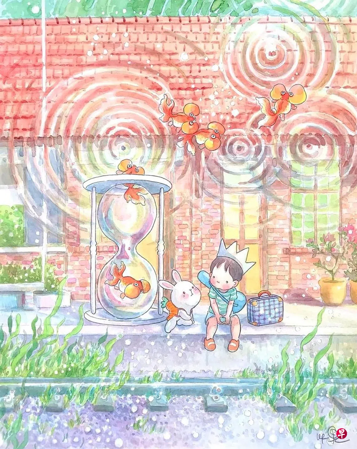 好些年前,在我早期的一则专栏中,文章题目是《黄大哥那几行字》,内文提及6岁时我以彩色铅笔,画了一幅金鱼图,幼儿园老师选中贴上了壁报,而某黄大哥看到了很是喜欢,向老师索了去,回赠我一张小书签,印着鱼群力争上游的图样,祝我学业进步。我真的相信我们都是带着满分行李箱而来的,而在我今生的行李箱里,一定是画画占了很大的百分比。