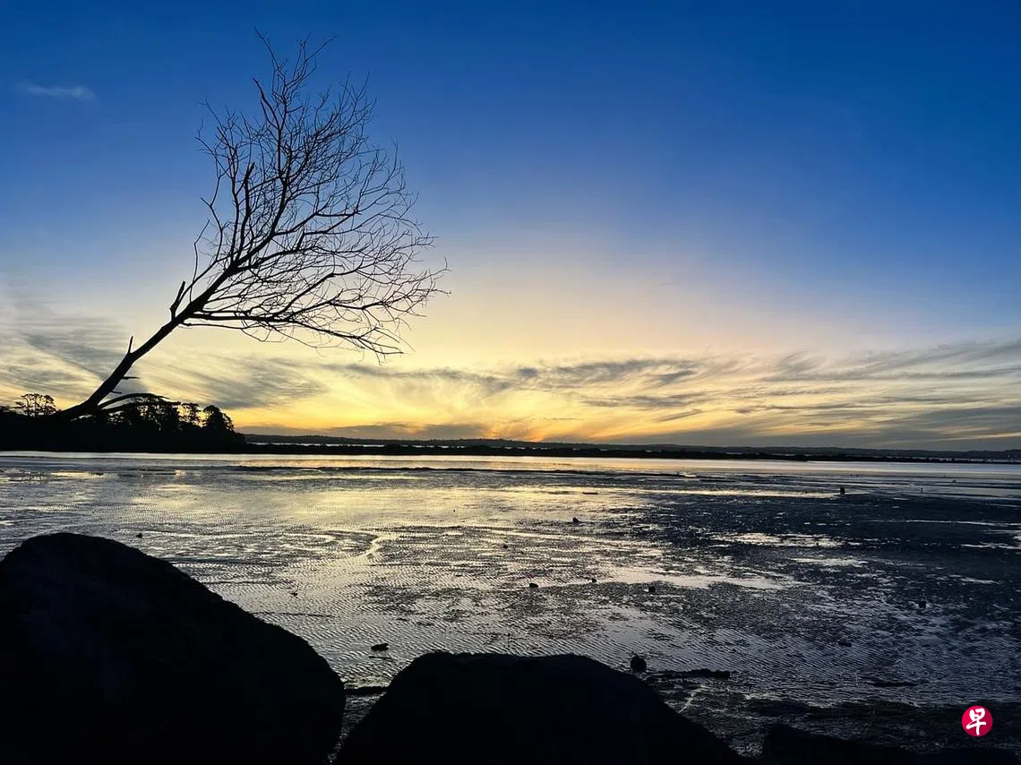 秦说:我在京都的寺庙里看过那样的景象。我说:让我想起新西兰的水中倒影树(Ngaio)。