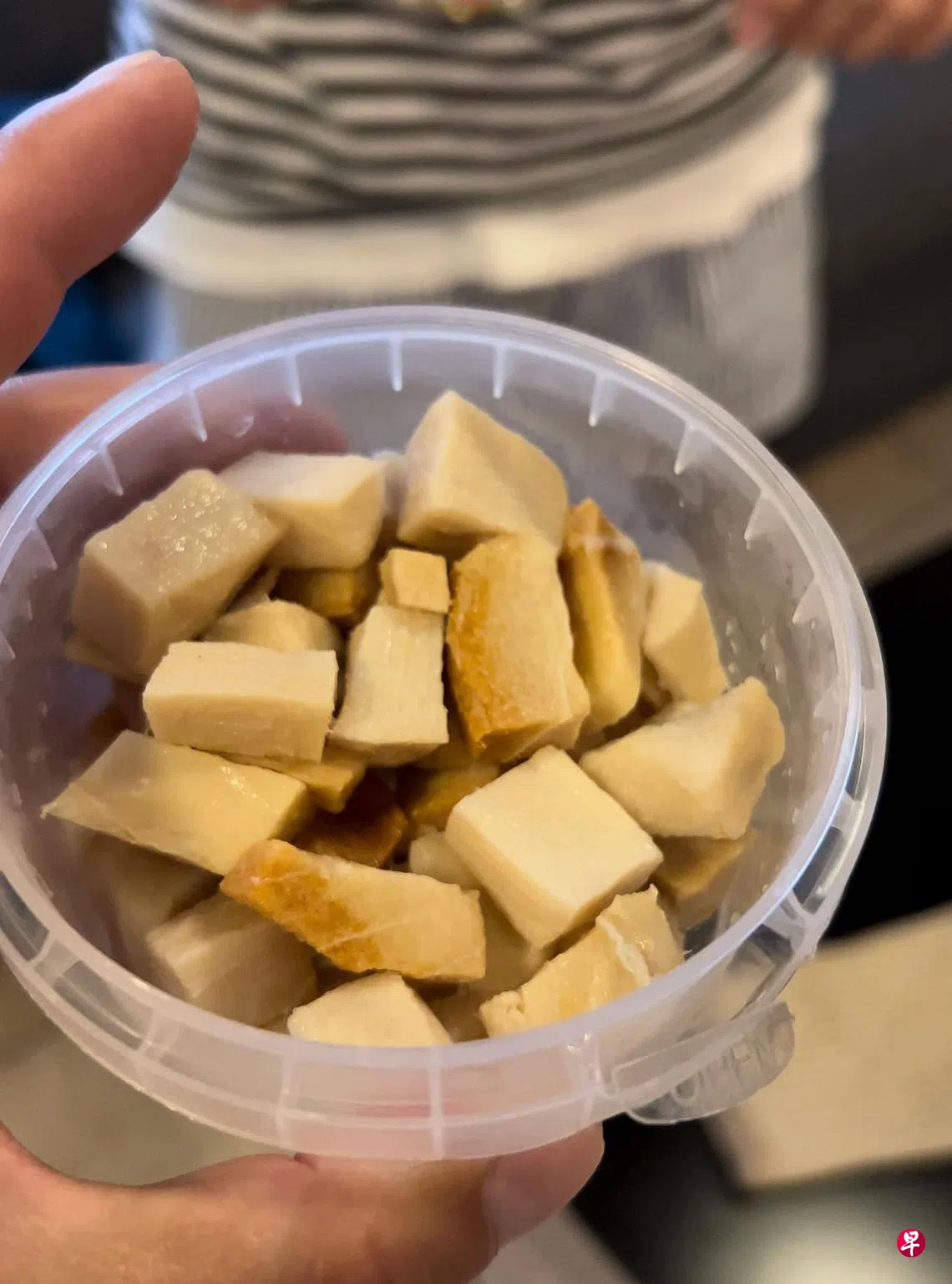 越是靠近嘴巴时,那股氨水味(就像是尿味)浓烈得化不开,咬下一口,软软的有点嚼劲,但那味道忍一忍吧,快快吞下去,再灌口汽水,像吃苦药。但臭比苦更难受。
