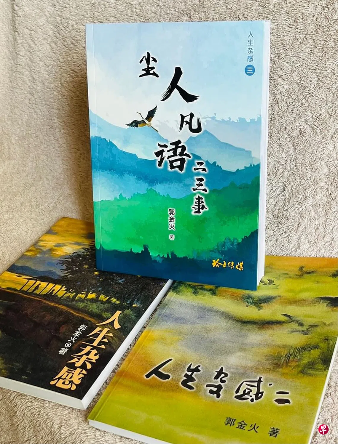 个把月前,老师来电,透露他正在筹备出版退休后的第三本文集。乐哉!耄耋高龄,仍透过方块字取悦生活的,毕竟为数不多了。多数文字耕夫青壮时躬耕文字田,执笔爬格,收割硕瓜累果,但过了七十古稀年,泰半已搁笔退耕。金火老师退休后却更积极抡起写作耙子,在文字田里种地,一如颜回居陋巷,一箪食一瓢饮,也乐在其中。老师的处女文集《人生杂感》出版于2005年,时年六十有四,春天看似来迟,却似一坛老酒,有饱满的后爆发力,近日他推出的《尘人凡语二三事》,是《人生杂感》的第三册。
