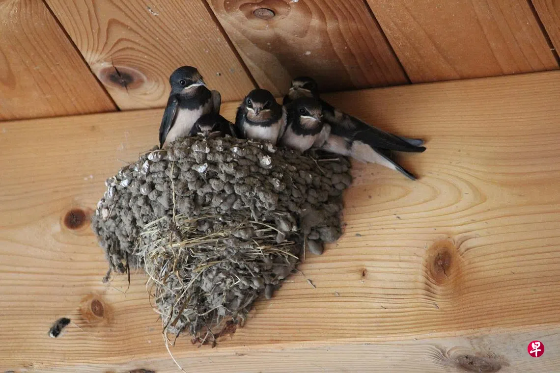 小刘终于明白是怎么一回事,原来燕子太太即将临盆,夫妻俩来不及筑巢,所以向邻居们求援。附近的燕子收到讯息,立即展开行动,你一口我一口地啣来湿泥,以最快速度将燕子夫妻的新家盖好,以解燃眉之急。
