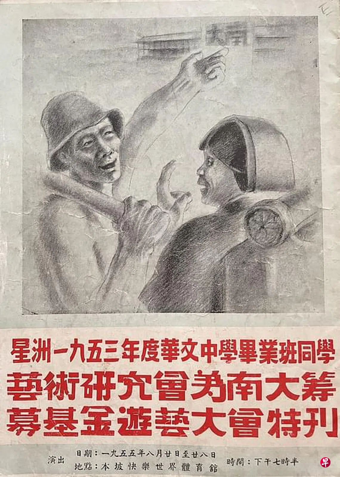 1955年8月21日晚上,新加坡快乐世界体育场人声鼎沸,能容纳8000人的场地坐满了观众。艺研会筹备了半年以上的大型游艺会,今晚终于要开演了,所有的节目都围绕着“为南大筹款”这个主题,压轴节目是人们翘首以盼的诗朗诵《南大颂》。