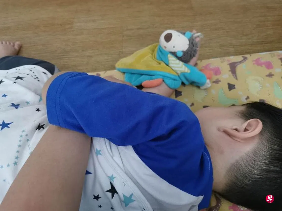 最后,我抱着他挤入小小的床垫里,一手被他的头枕着,一手轻拍哄他入睡。等我听见他微小的打呼声时,已经演变成我的手被他夹在胳肢窝下进入梦乡。