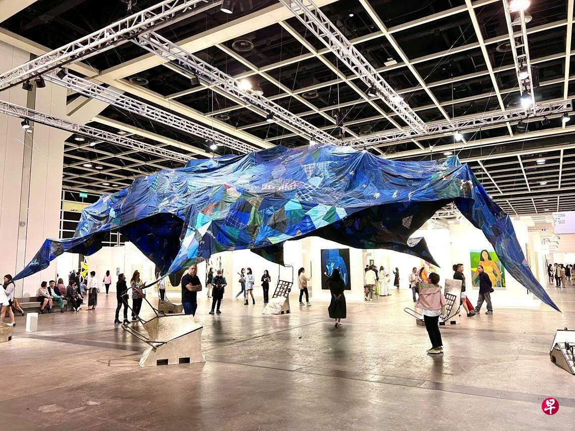 香港的巴塞尔艺术展人潮迫爆,一名中年女性朋友把手机握在掌里,看得啧啧连声,目不转睛。