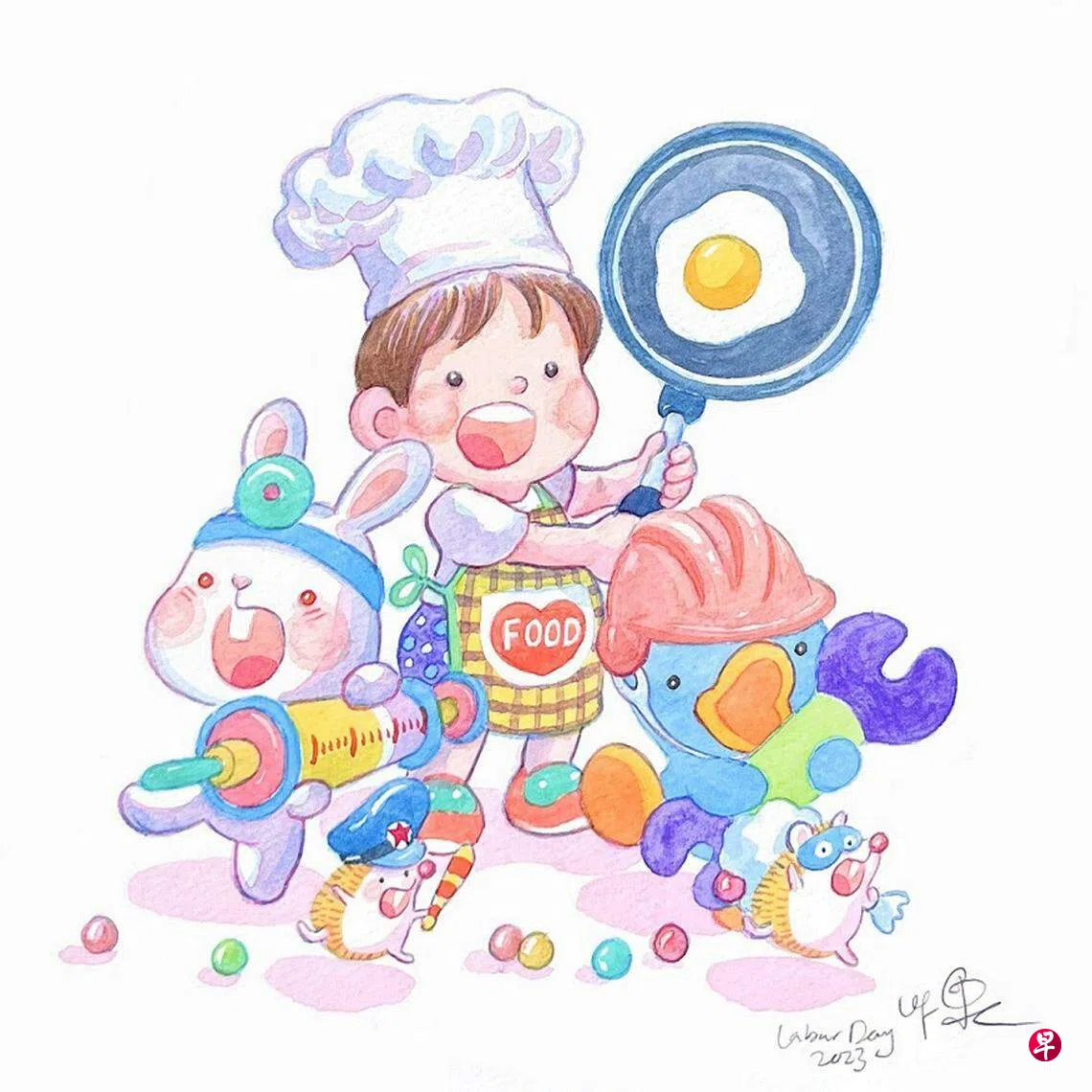 星期一是劳动节,图星期六就画好了,星期天一早率先发给老友们分享,一来是提前送上节日祝福,再来也可听听他们对图画的意见,一举两得。老友之一立即回应:怎么没画IT从业员?怎么也没有教师?