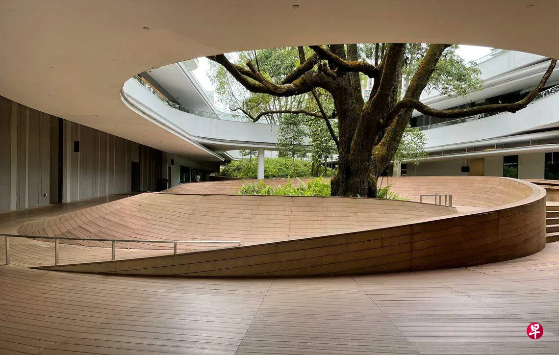 国大作为本地历史最悠久的大学,前身是1905年成立的爱德华七世医学院,1949年与莱佛士学院(1928年成立)合并成为马来亚大学,1962年成为新加坡大学,1980年与南洋大学(1955年成立)合并成为新加坡国立大学。作为国大三个校区中最大的一个,面积达150公顷的肯特岗校区建成于1970年代,是典型的现代规划与建筑思潮的产物。沿着山坡布置的板状教学楼,由高低起伏的台阶与颜色各异的廊道连接,校园遍布绿冠如伞的雨树,总让人想起“菁菁校园”这个词。