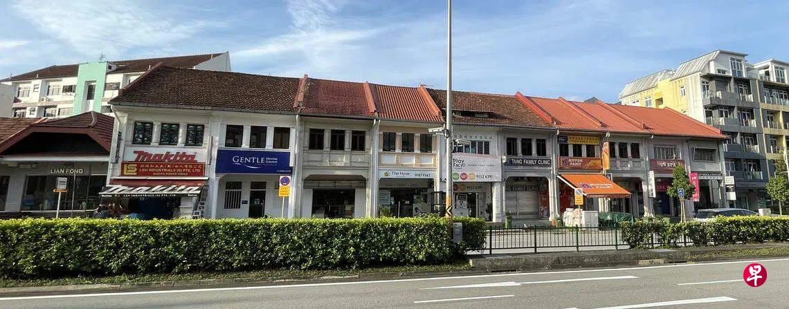 走出美世界地铁站,天已向晚。下班时分的七英里人潮熙来攘往,嘈杂市声中路人皆是行色匆匆,我们也不禁加快了脚步。转入惹兰裕廊克基路(Jalan Jurong Kechil),行至七英里咖啡店,刚要坐下喝杯茶,没想一抬头,我们要找的那排店屋罩在黄昏柔和阳光中,静静地立在马路的斜对面。