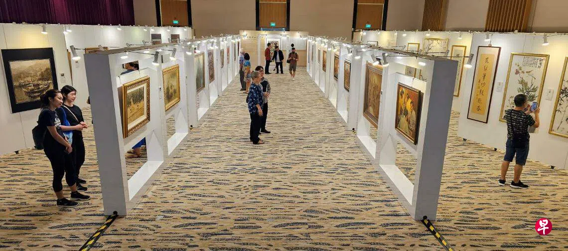 在杜南发先生的书《隔岸看山——书画名家访谈录》上得知秋斋主人曾国和先生的收藏概况,一直无缘拜观。欣喜适逢《联合早报》百年庆(合并两报,《南洋商报》创办于1923年;《星洲日报》创办于1929年)的“狮城美术·百年光华”特展,秋斋慷慨借展,加上《联合早报》珍藏品中的21件书画,总共呈献了80位艺术家的170件作品,从南洋美专校长林学大,到1970年代出生的新移民,俨然拉开新加坡美术简史的长卷。