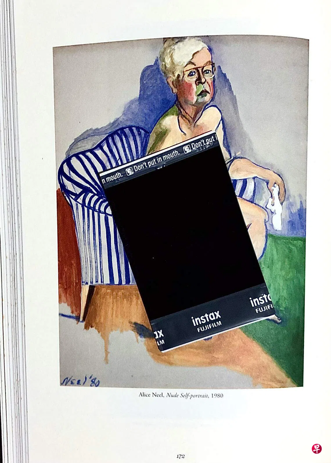 在美国艺术家Alice Neel的自画像里,一头白发,戴着眼镜,脸上有些傲气的老妇人望向观者,像是陷入某种思绪中。这没什么奇怪,最让人不安的是,她是全裸的。梨形的身材胸前垂挂着两只几乎贴到腹部的乳房,肥大的下半身和屁股,坐在一张蓝色线条的沙发椅上。