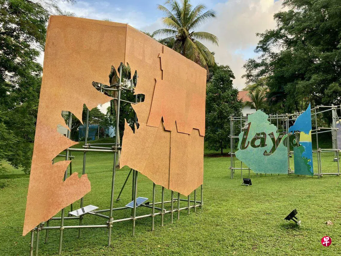 数周前在住家附近的铁道走廊散步,发现有点不一样。靠近东陵福那一段,就在通向威硕斯村(Wessex Estate)的斜坡上,放置了一组装置艺术。这是新加坡美术馆近期推出的“每日艺术计划”,在丹戎巴葛邻里和铁道走廊一带展出本地艺术家的作品,让公众与艺术不期而遇。