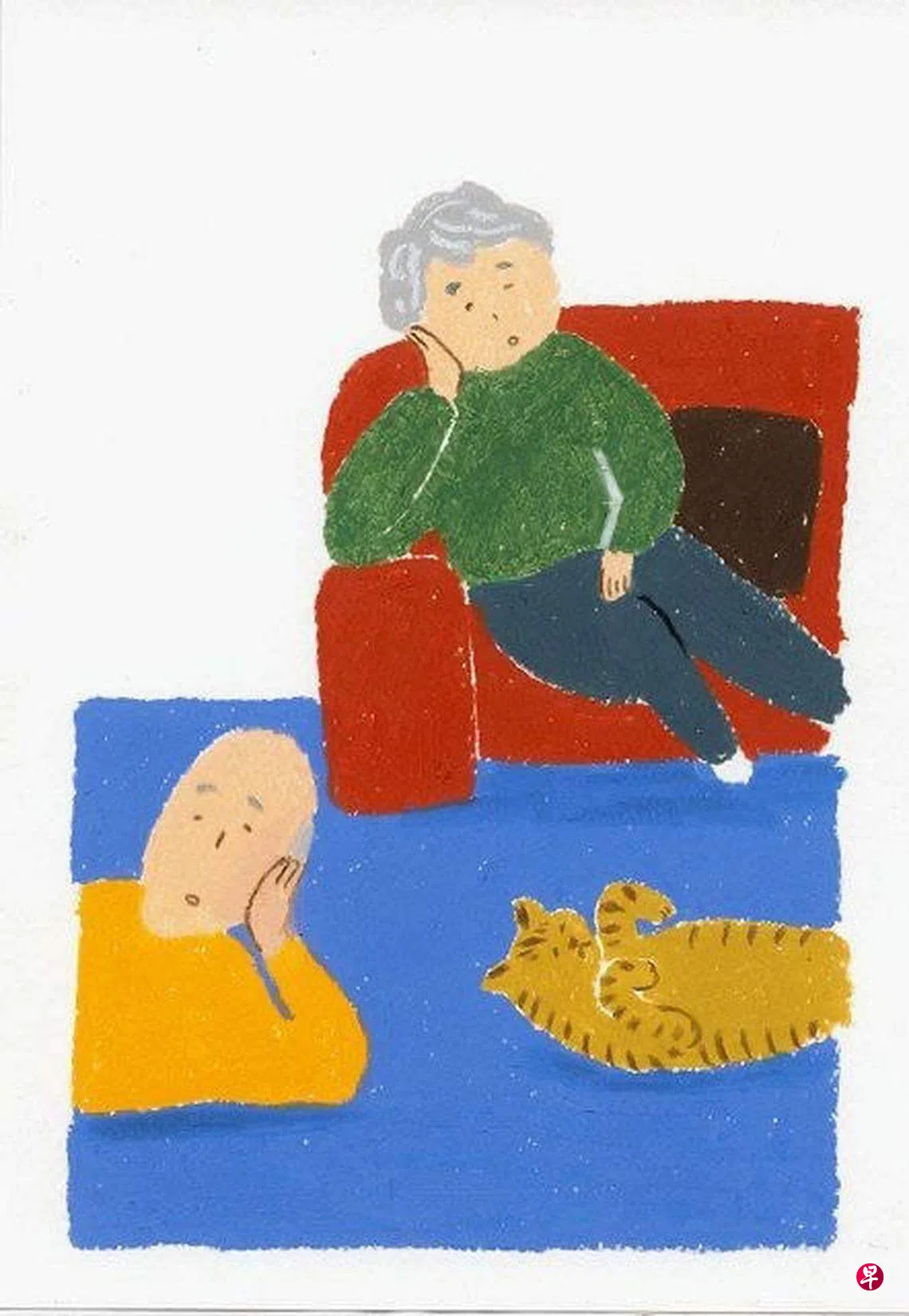 其实在这之前,已经在脸书上读过一些银发川柳,我很喜欢,可是从来没有想过要买结集,我根本不知道有这套简中本的存在。已经出了七本,朋友送我的这两本是第一本和第五本。字体超大,让我发笑,该不会是读了“买书时/比起内容/更关心字体大小”(西村嘉浩,71岁)这首,才想到要用这么大的字体来印吧。我也喜欢古谷充子的插画,很有一种从来没有学过画画的人纯粹因为喜欢画画而动手的童趣,乍看还以为是个三年级小学生的涂鸦,其实古谷充子小姐今年已经47岁了。
