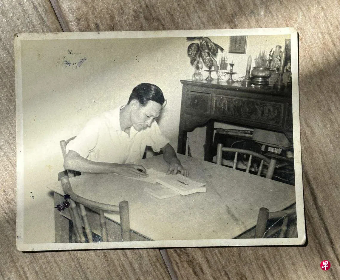 为寻找骨灰灵位的照片,翻阅相片簿时,一张您在家里神台旁、云石桌上,安静地看书、用钢笔写字的黑白照跳脱出来。照片中的您那么年青勃发,头发梳得油亮,穿着白衬衫,终其一生是一个忠诚的阅读者。